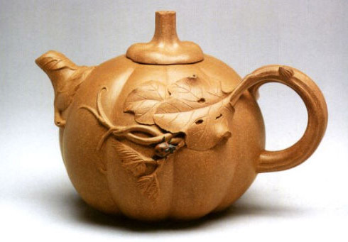 塑器造型一般稱為“花貨”,是對(duì)雕塑性器皿及帶有浮雕、半圓雕裝飾器皿造型的統(tǒng)稱。將生活中所見的各種自然形象和各種物象的形態(tài)透過藝術(shù)手法,設(shè)計(jì)成器皿造型,如將松竹梅等形象制成各種樹樁形造型?;蛘呤窃趫A器及方器選型上運(yùn)用雕、鏤、捏塑等手法,將自然形體變化為造型的部份,如壺的嘴、把、蓋、鈕,或者是在造型的顯見部位施以簡(jiǎn)潔的堆雕裝飾。壺體上這些堆雕,總是要求寧簡(jiǎn)勿繁,做到主次分明,以達(dá)到視覺上的和諧與平衡。這種壺藝造型規(guī)則是“源于自然,而高于自然,造型不僅應(yīng)具有適度性的藝術(shù)夸張,又應(yīng)著意于風(fēng)格瀟灑”。例如此類壺藝以松竹梅為裝飾題材時(shí),勁松要刻劃出枝干勁拔,針葉挺秀,氣勢(shì)鏗鏘;秀竹則要求嫻靜有致,俊逸瀟灑;冬梅又須主干蒼勁,寒中獨(dú)俏,素枝閑花,以簡(jiǎn)為主,達(dá)到疏中見密,少里寓多,富有活力氣息的藝術(shù)效果。所以,紫砂塑器不僅應(yīng)形象生動(dòng),構(gòu)圖簡(jiǎn)潔,而且應(yīng)巧妙地利用紫砂泥料的天然色澤來(lái)增強(qiáng)其藝術(shù)效果。