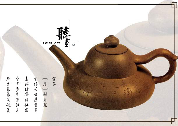 “陽(yáng)羨(即宜興)瓷壺自明季始盛,上者與金玉等價(jià)”,說(shuō)的就是陶器中的佼佼者——宜興紫砂茶具。紫砂壺早在北宋初期就已崛起,明代大為流行。其里外都不敷釉,采用當(dāng)?shù)氐淖夏唷⒓t泥、團(tuán)山泥摶制焙燒而成。由于成陶火溫高,燒結(jié)密致,胎質(zhì)細(xì)膩,既不滲漏,又有肉眼看不見(jiàn)的氣孔,且傳熱不快,不致?tīng)C手;若熱天盛茶,不易酸餿;即使冷熱劇變,也不會(huì)破裂 。...