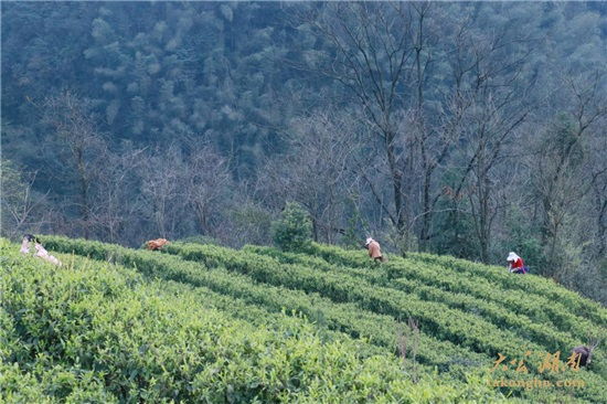 “這一片基地已經(jīng)是今年第二次采摘了,今年天氣好,早茶生長很快,品質(zhì)也很高。”春日暖陽照耀下,湖南省常德市桃源縣楊溪橋鎮(zhèn)蔡家塘村的里寶山有機茶園基地,迎來了早茶采摘的黃金時間。采茶工們正在動作熟練的采摘茶葉,桃源縣君和野茶開發(fā)有限公司董事長詹立君興致勃勃地向記者介紹著里寶山有機茶園基地情況和今年茶葉的長勢。