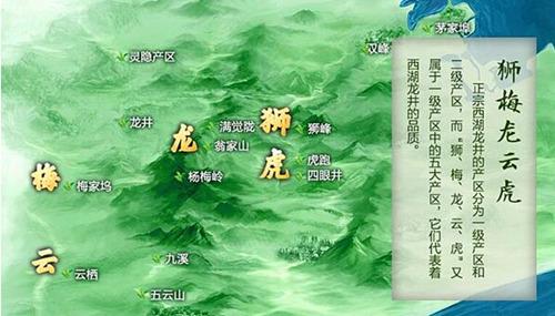 (西湖龍井茶的五大核心一級(jí)產(chǎn)區(qū)分布圖)