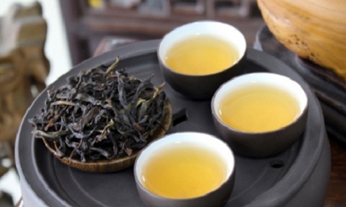 具有獨(dú)特的天然花香,湯色澄明黃亮,碗內(nèi)壁顯金圈,滋味濃醇鮮爽,葉底勻齊,青葉鑲紅邊。其泡茶方法也十分講究,用特制精巧的宜興小紫砂茶壺,用“若深珍藏”小瓷杯泡飲,茶多水少時(shí)間短?!耙慌萋勂湎?、二泡嘗其味、三泡飲其湯。”飲后令人釋躁平矜、怡情悅性。