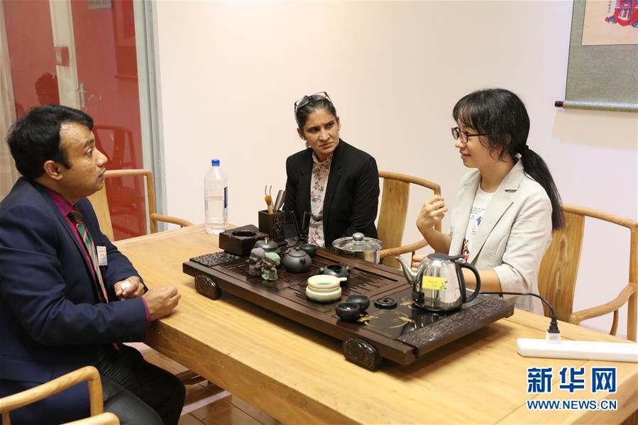 6月18日,參加“中斐公務(wù)員高級(jí)培訓(xùn)班”的學(xué)員在斐濟(jì)蘇瓦體驗(yàn)中國茶藝。 (斐濟(jì)中國文化中心供圖)