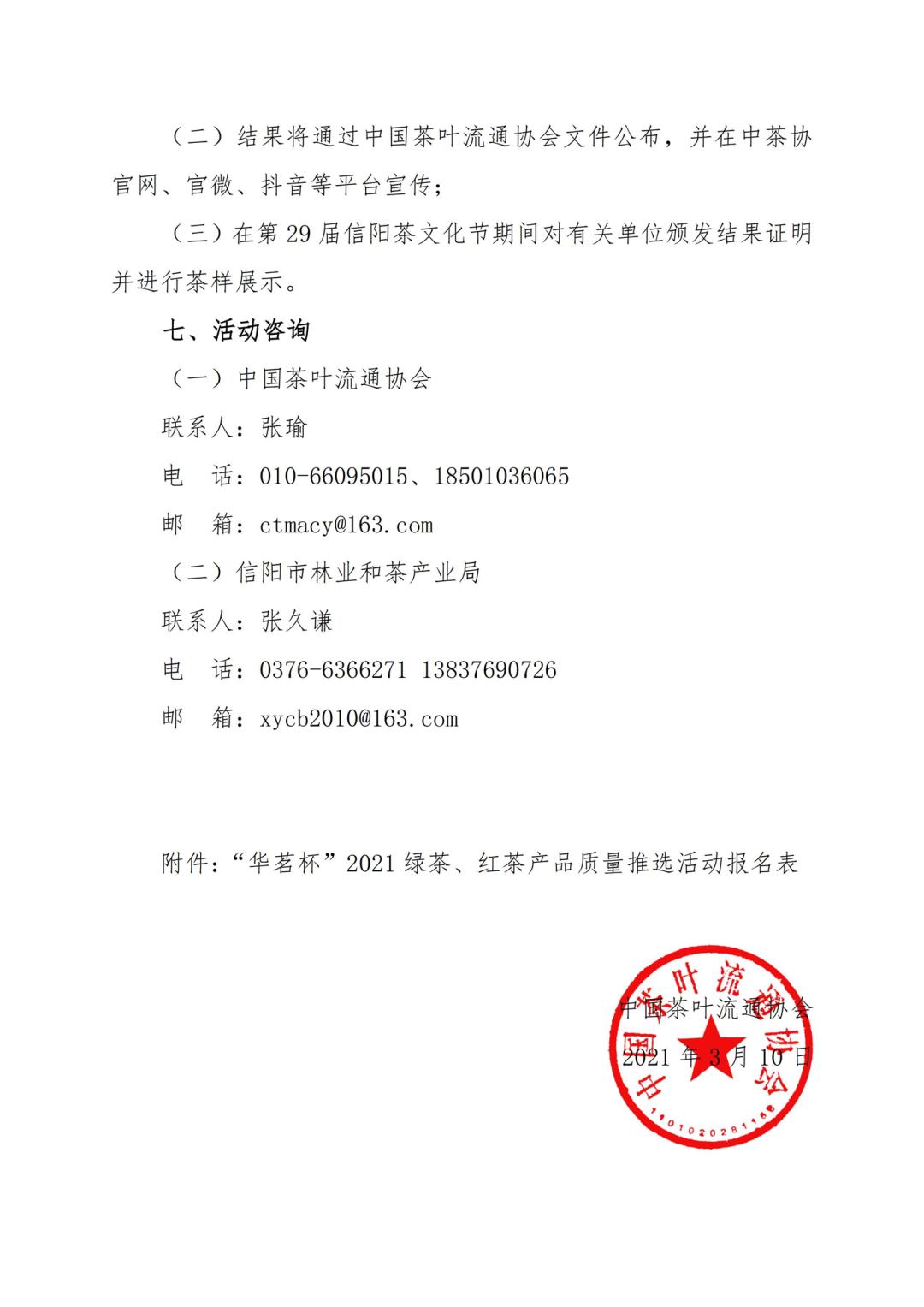 本文標(biāo)題:關(guān)于邀請(qǐng)參加“華茗杯”2021綠茶、紅茶產(chǎn)品質(zhì)量推選活動(dòng)的通知 - 茶葉新聞_中國(guó)茶葉新聞_國(guó)際茶葉新聞