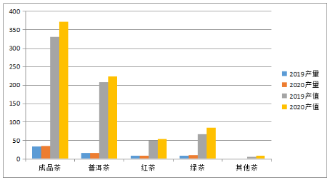圖11  2019-2020成品茶類產(chǎn)量產(chǎn)值比較圖