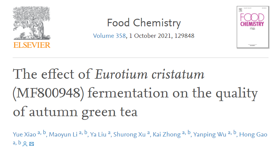 近日,我院高鴻教授團(tuán)隊(duì)以秋茶為原料,利用專利菌株“冠突散囊菌PW-1”進(jìn)行秋茶發(fā)酵,探究冠突散囊菌PW-1菌株對(duì)黑茶品質(zhì)的提升作用及機(jī)制,相關(guān)研究成果以我院為第一單位發(fā)表在食品科技領(lǐng)域頂級(jí)期刊《Food Chemistry》上,題為“The effect of Eurotium cristatum (MF800948) fermentation on the quality of autumn green tea”。我院博士研究生肖月為第一作者,高鴻教授為通訊作者,該項(xiàng)目獲得了四川省科技計(jì)劃項(xiàng)目基金(No. 20ZDYF3186)的支持。