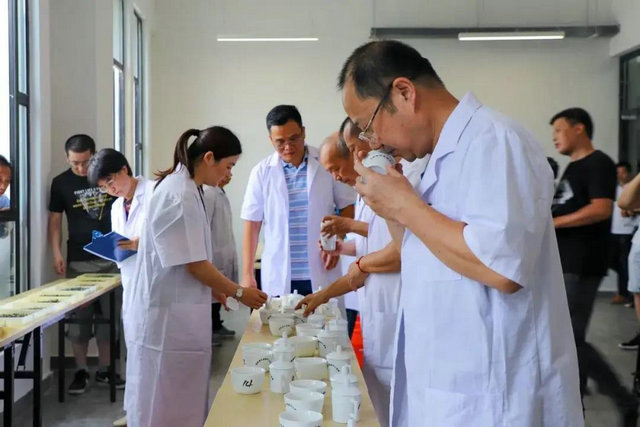 評外形、鑒湯色、聞香氣、品滋味、看葉底……斗茶賽現(xiàn)場,8位審評專家揉捏嗅聞,細看細品,專注評審參賽茶樣,根據(jù)茶樣的外形、香氣、湯色、滋味和葉底五個方面進行評分,將五個分數(shù)相加,從高到低設置獎項,并對獲獎茶樣進行質量安全檢測,評選出各個茶類的茶王一名,金獎兩名,銀獎三名。