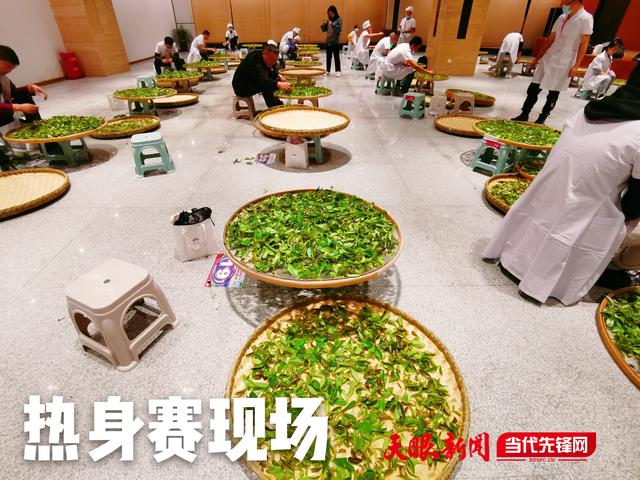 熱身賽現(xiàn)場,20余位身著白色大褂的行家里手細致地挑摘著鮮葉。為保證比賽公平,比賽使用的茶葉均是舉辦方統(tǒng)一提供的習(xí)水古樹茶。