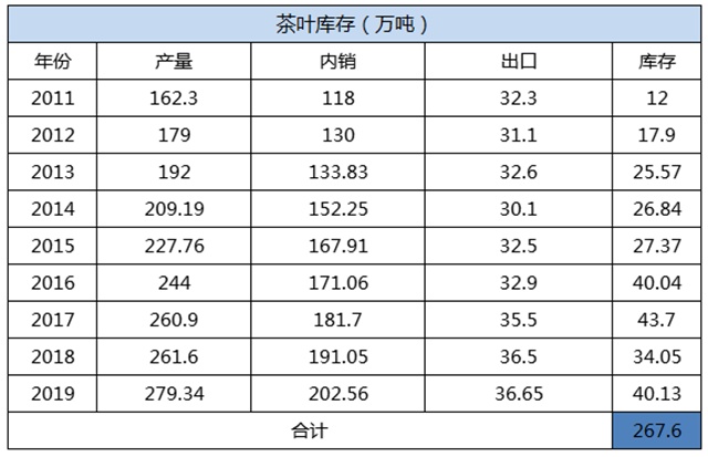 這一組數(shù)據(jù),茶園面積和茶葉產(chǎn)量不斷增加,內(nèi)銷和出口的速度,遠遠趕不上茶葉生產(chǎn)的增速,未來幾年,庫存只會越來越多。